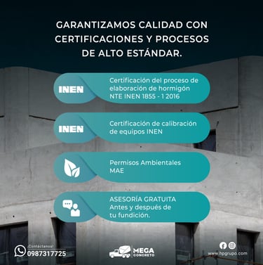 "Cada lote de nuestro hormigón es evaluado para garantizar que cumple con los parámetros de resistencia establecidos. Nuestros clientes reciben resultados técnicos que respaldan la seguridad y durabilidad de cada entrega. En Megaconcreto, la calidad no es opcional: es nuestro estándar."