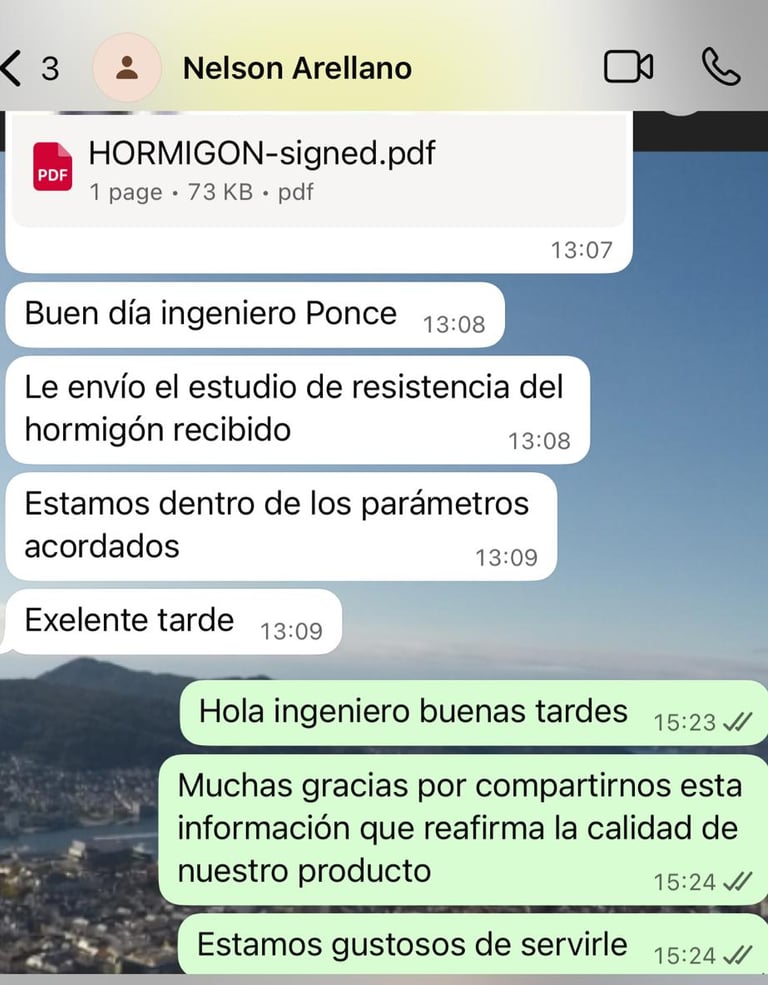 Contraté sus servicios cuando inicié el proyecto de construir mi casa hace cinco años, desde el primer momento recibí una asesoría excelente y un trato muy amable, hoy puedo decir con total certeza que el hormigón que utilizaron ha demostrado una calidad excepcional, sin duda, los recomiendo plenamente.